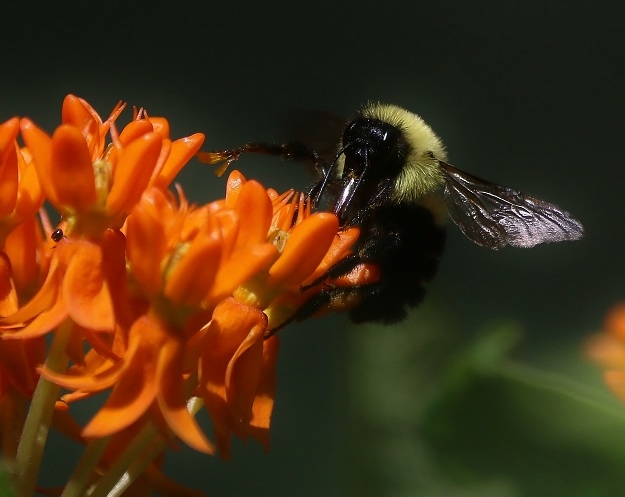 Bumble Bee with Orange Butterfly Weed. Photo taken near Marmora, Ontario. Photograph copyright Matthew King. Available as an 8×10 print, matted and framed. E-mail birdsandbeesandblooms@gmail.com to inquire.