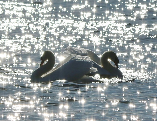 Sparkle Swans: photo of mute swans taken at Belleville, Ontario. Photograph copyright Matthew King. E-mail birdsandbeesandblooms@gmail.com to inquire concerning use or purchase.