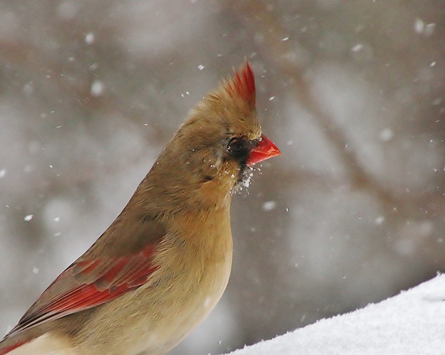 Cardinal Curves: photo of northern cardinal taken near Marmora, Ontario. Photograph copyright Matthew King. E-mail birdsandbeesandblooms@gmail.com to inquire concerning use or purchase.