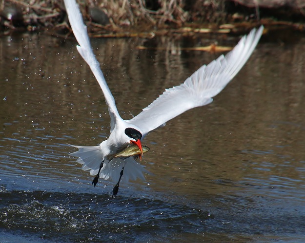 Tern with Rock Bass: photo of Caspian tern taken at Belleville, Ontario. Photograph copyright Matthew King. E-mail birdsandbeesandblooms@gmail.com to inquire concerning use or purchase.
