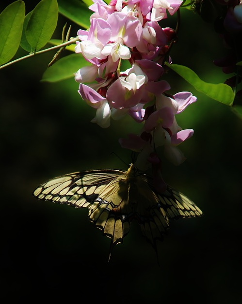 Giant Swallowtail Hanging from Locust Blossoms. Photo taken near Marmora, Ontario. Photograph copyright Matthew King. E-mail birdsandbeesandblooms@gmail.com to inquire concerning use or purchase.