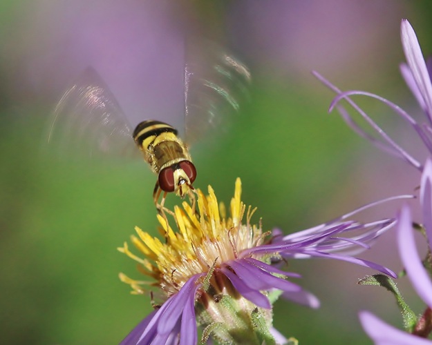 Hoverfly Wings with Aster Flowers. Photo taken near Marmora, Ontario. Copyright Matthew King. E-mail birdsandbeesandblooms@gmail.com to inquire concerning use or purchase.
