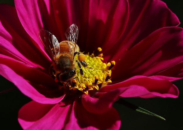Drinking Up the Cosmos: photo of bumblebee in pink cosmos flower taken near Marmora, Ontario. Copyright Matthew King. E-mail birdsandbeesandblooms@gmail.com to inquire concerning use or purchase.